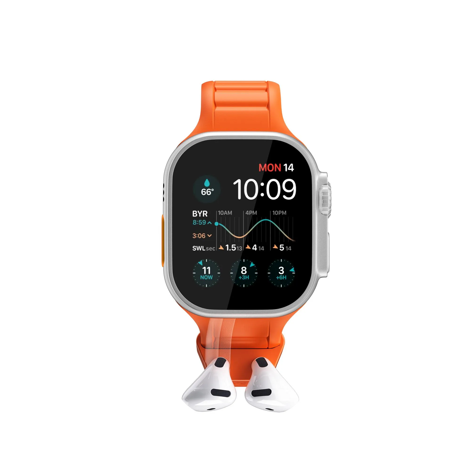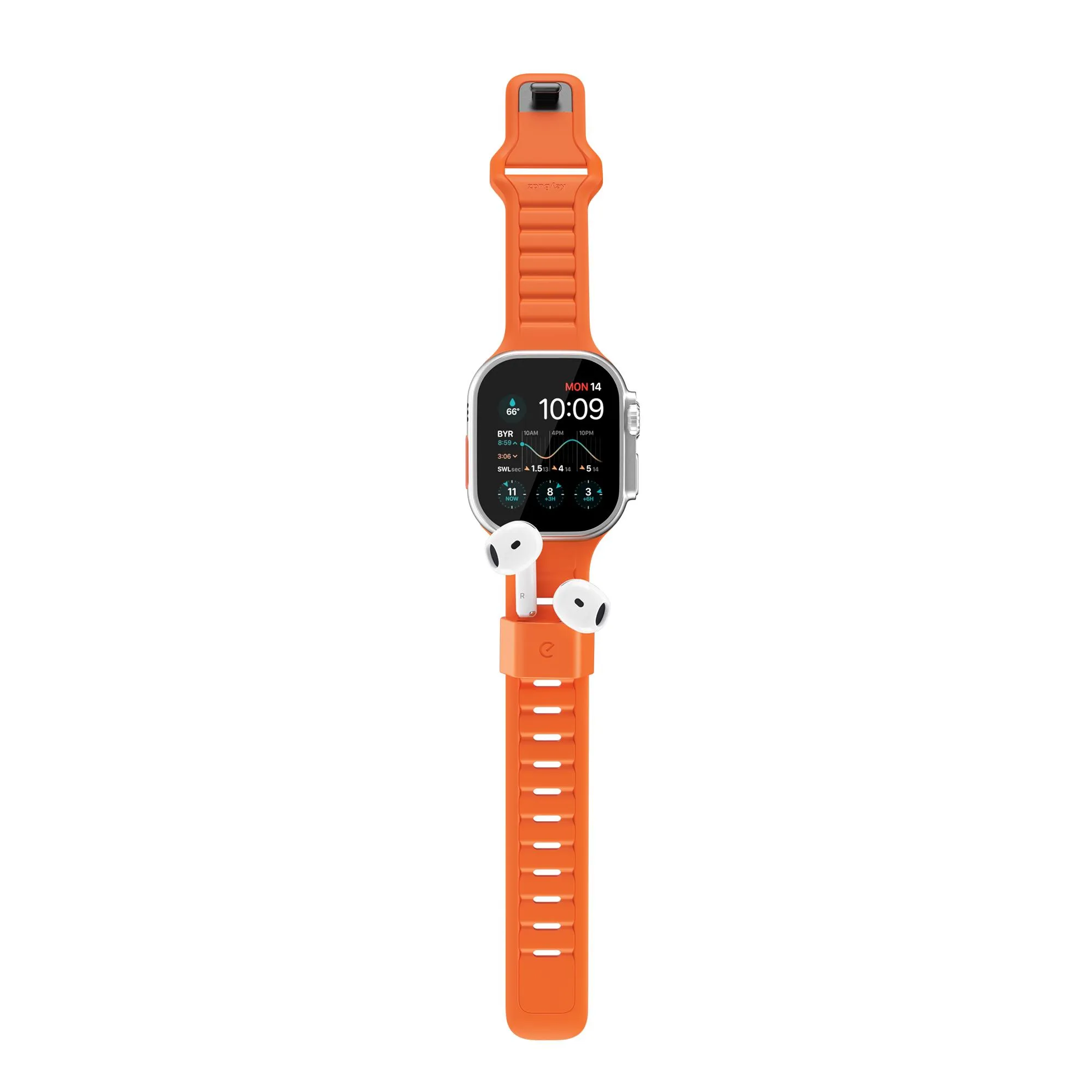 KeyBudz Sync+ Series FKM-urrem og AirPod-dock til 44-49 mm Apple Watch - Elektrisk orange