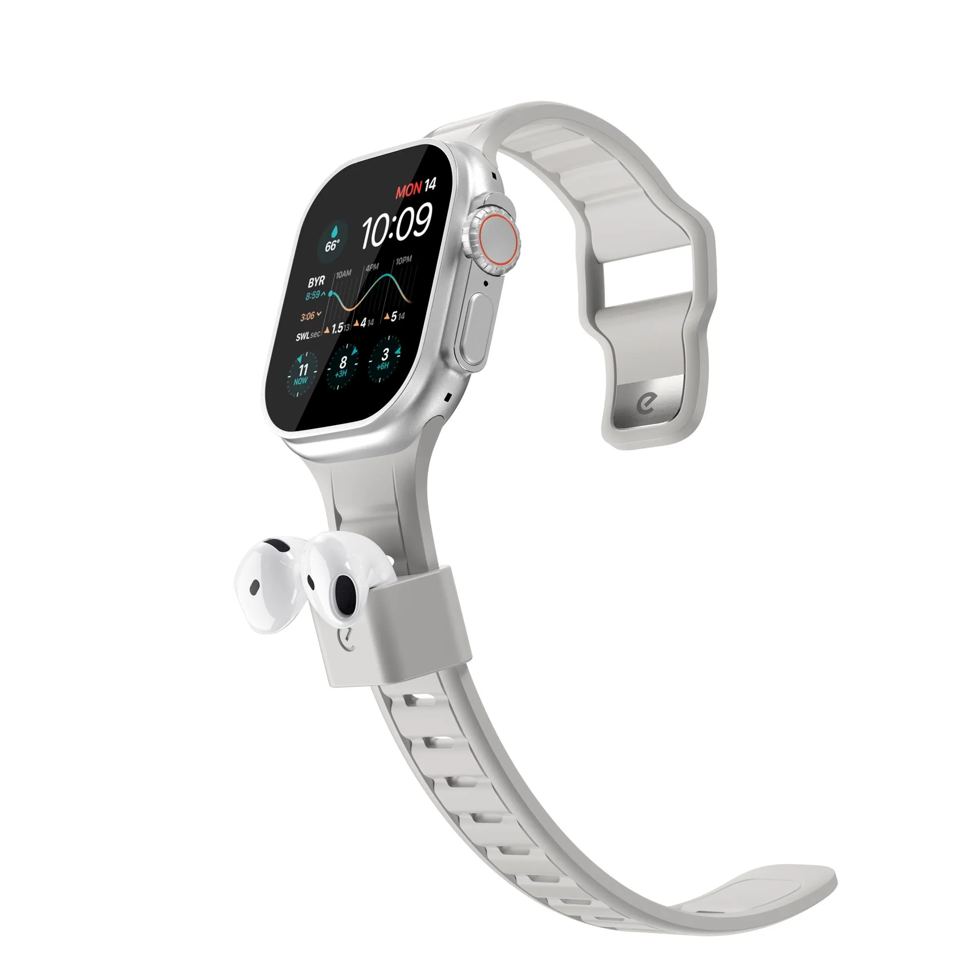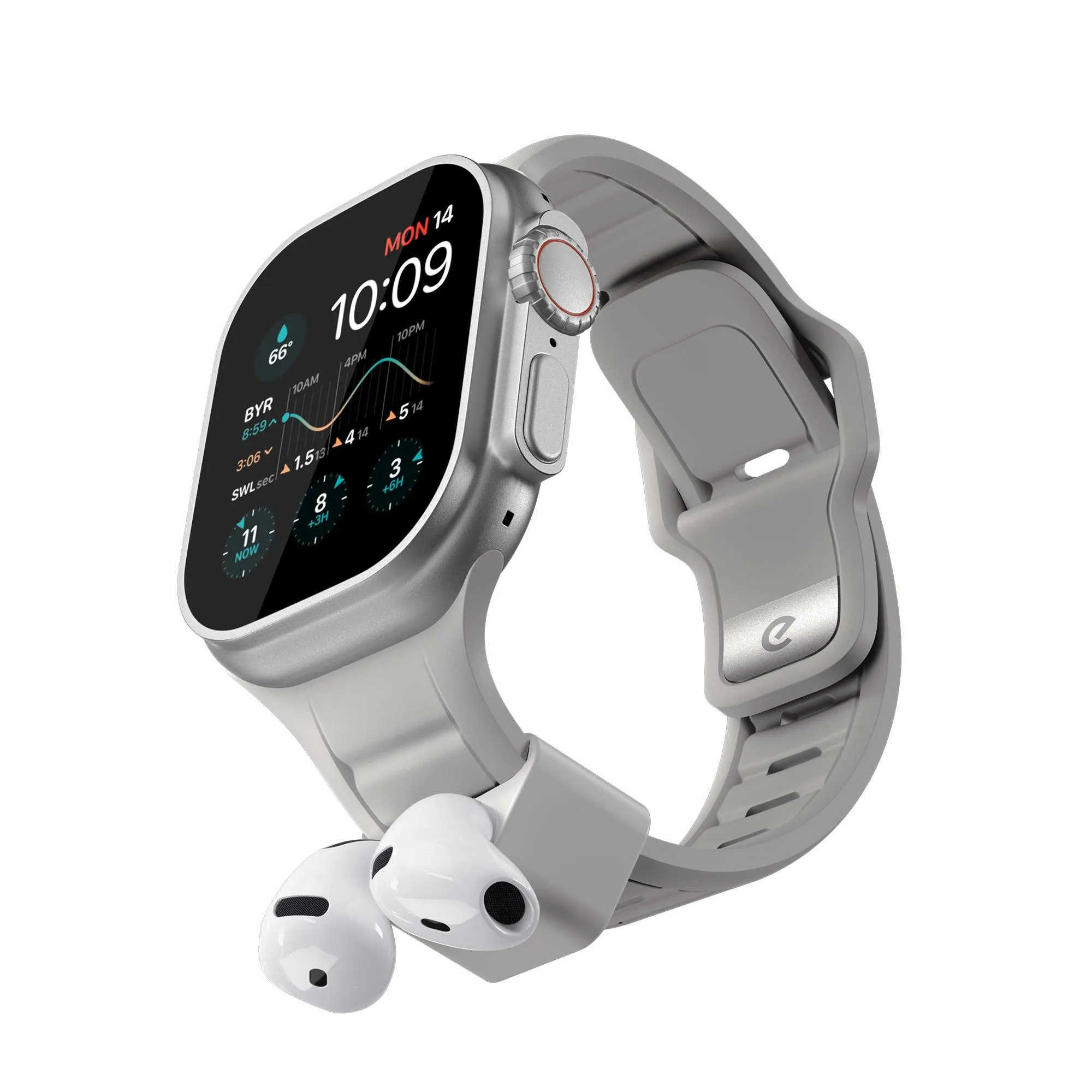 KeyBudz Sync+ Series FKM-rem til klokke og AirPod-dokk for 44–49 mm Apple klokke - Steingrå