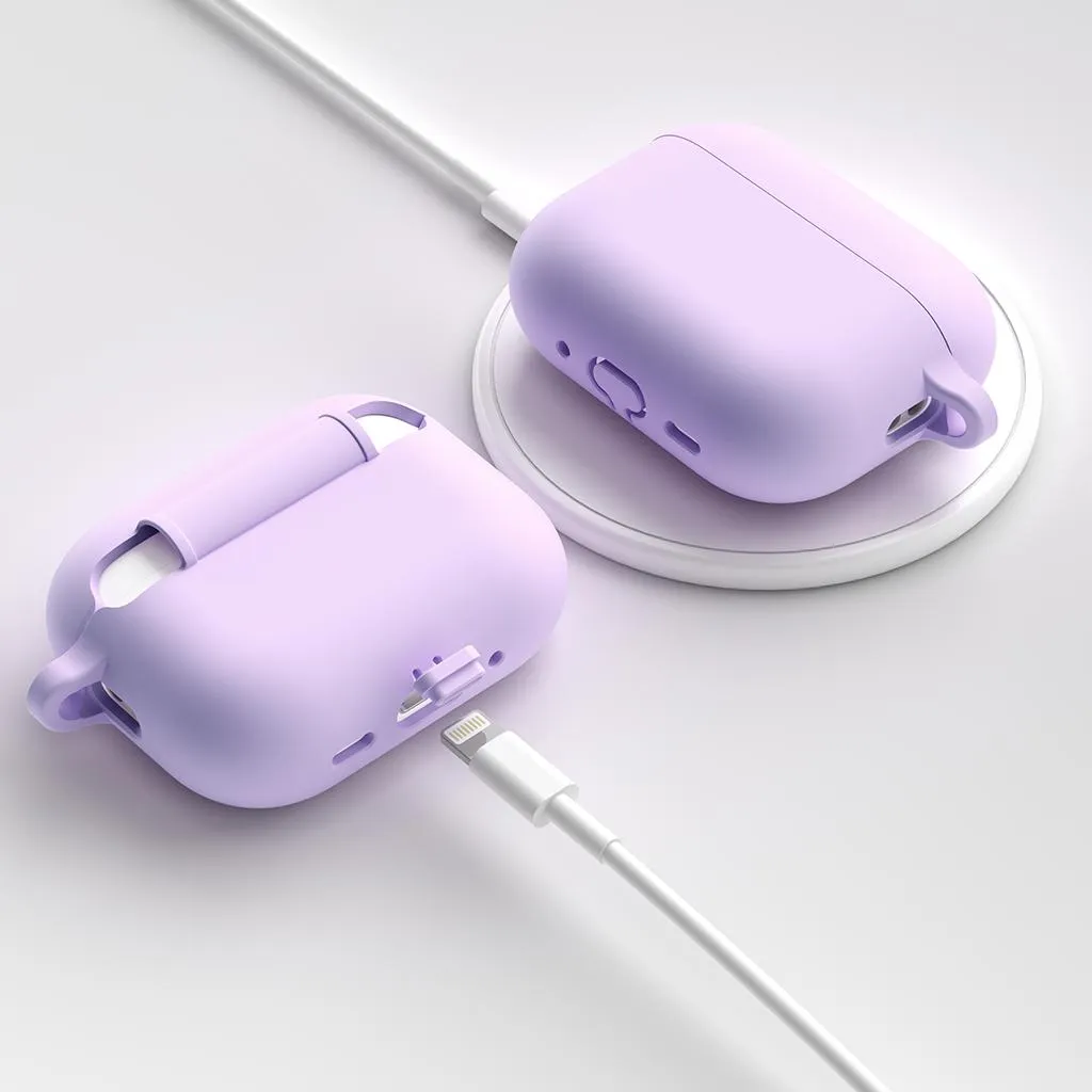 KeyBudz fodral i Elevate-serien för AirPods Pro Gen 3–Silikonskydd med dammpropp och karbinhake - Lavendel