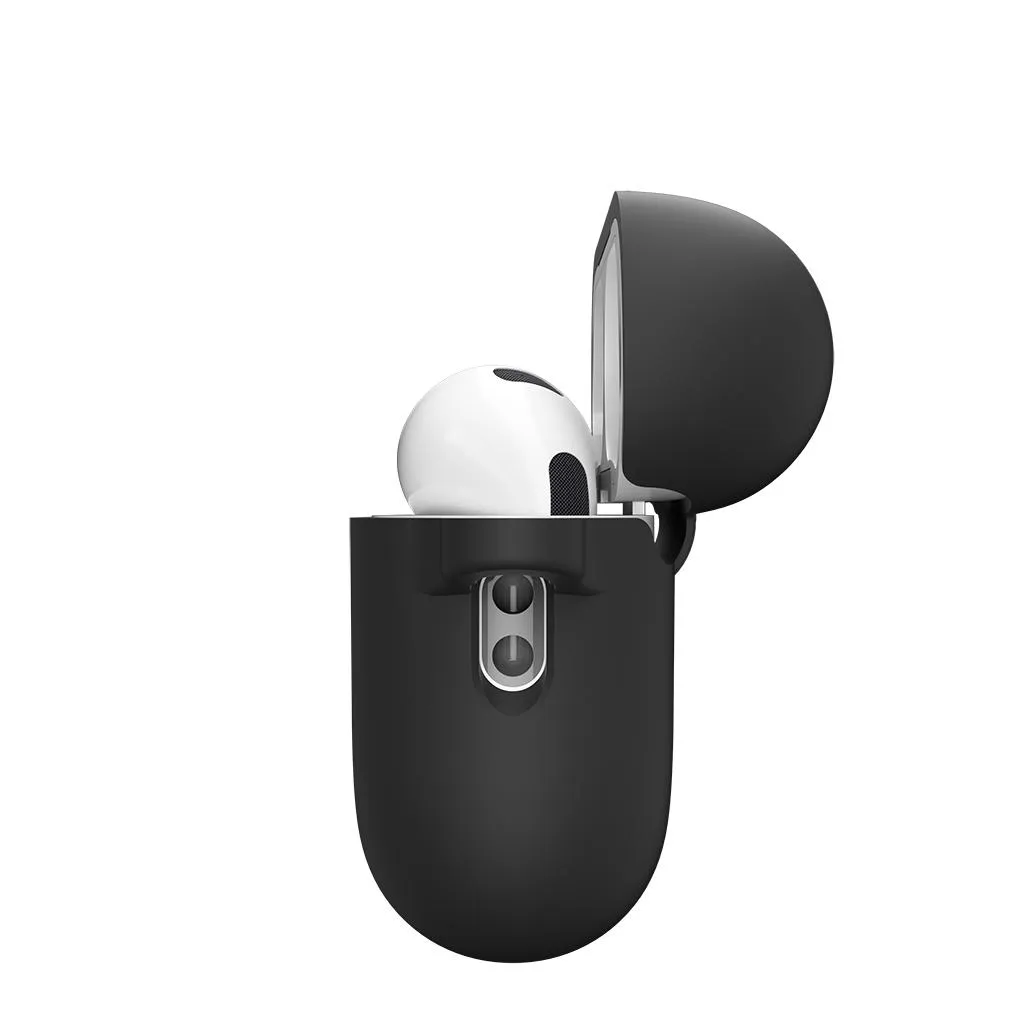 KeyBudz fodral i Elevate-serien för AirPods Pro Gen 3–Silikonskydd med karbinhake och portlock - Svart