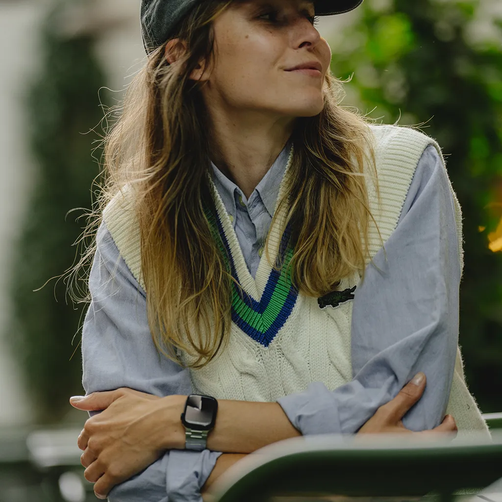 Upplev snabb och enkel fastsättning med ett säkert och tryggt spänne. Fällmekanismen med ett klick ger ett smidigt, verktygsfritt sätt att ta på och av bandet samtidigt som det skyddar bandet från dagligt slitage.