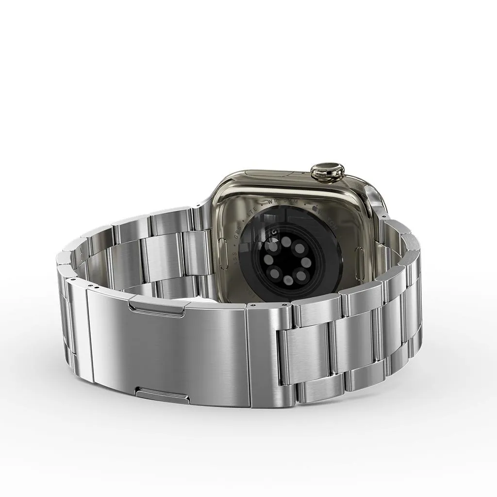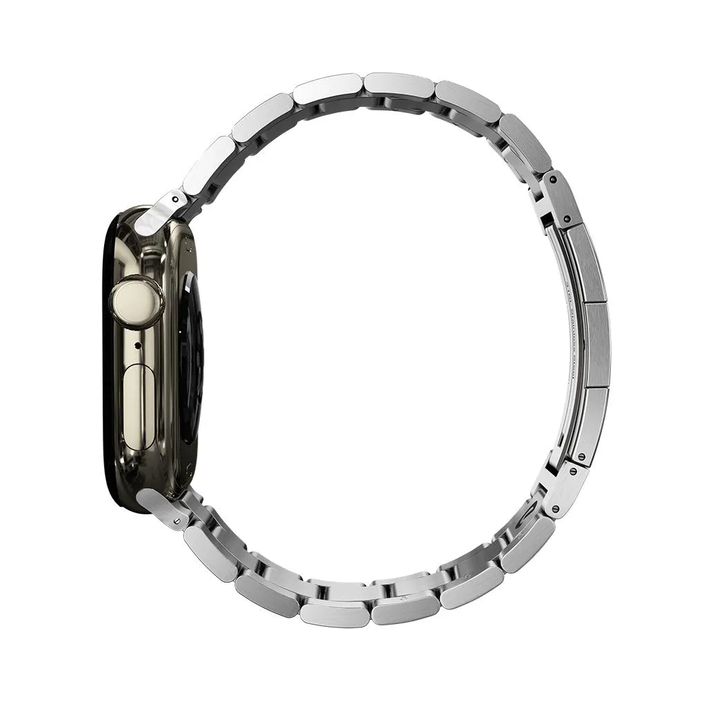 Äg ögonblicket med Spectra Series Apple Watch-armband i rostfritt stål från KeyBudz, storlek Small. Detta band är tillverkat för stil och byggt för att hålla, och blandar robust hållbarhet med raffinerad design för att lyfta varje look, från styrelserummet till stigen.