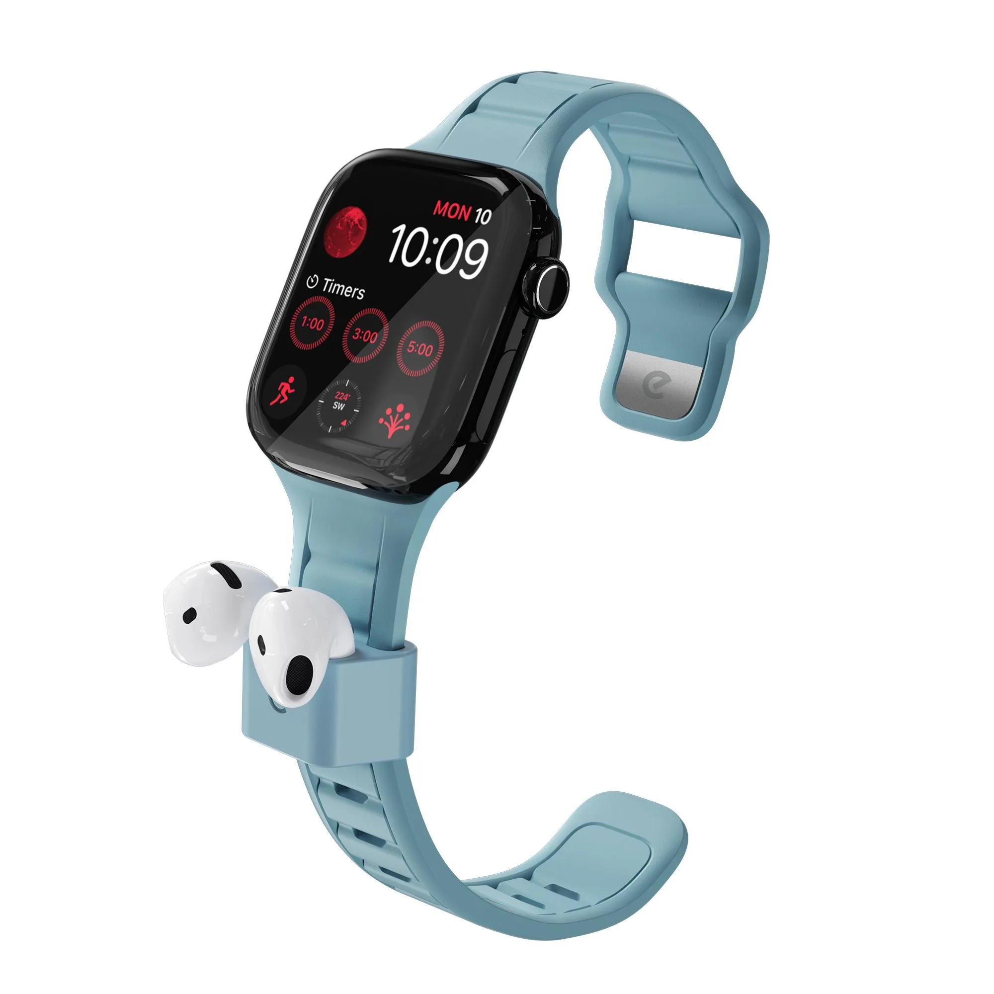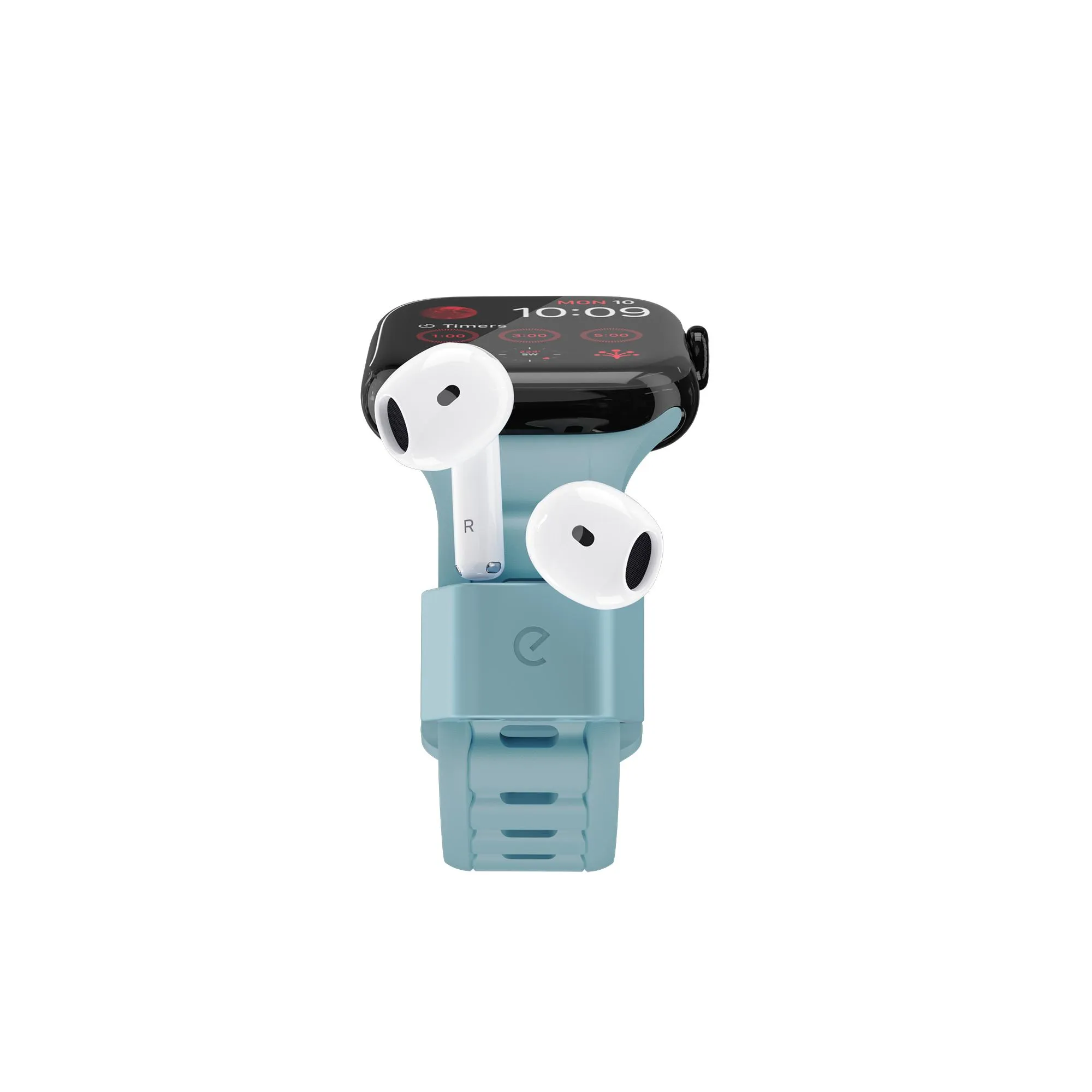 KeyBudz Sync+ Series FKM-klockarmband och AirPod-docka för 38–42 mm Apple Watch - Tidal Blue